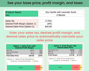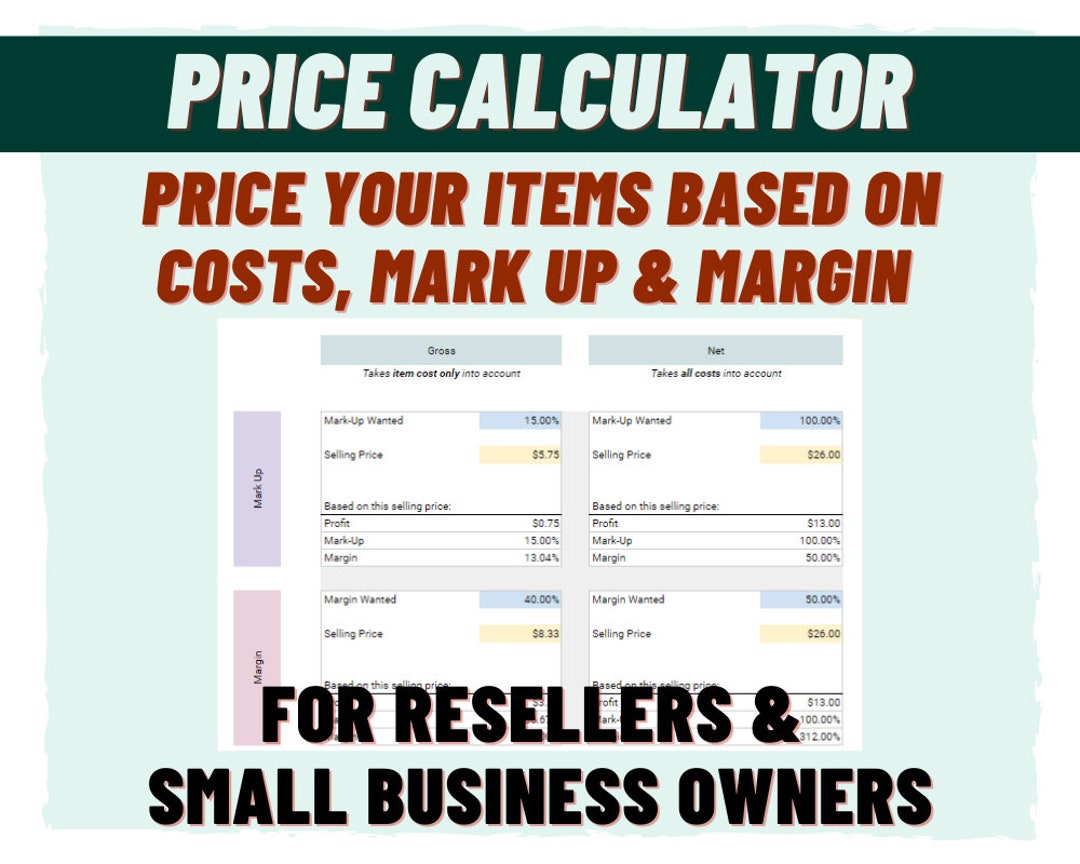 Price Calculator And Profit Margin Template Small Business Etsy